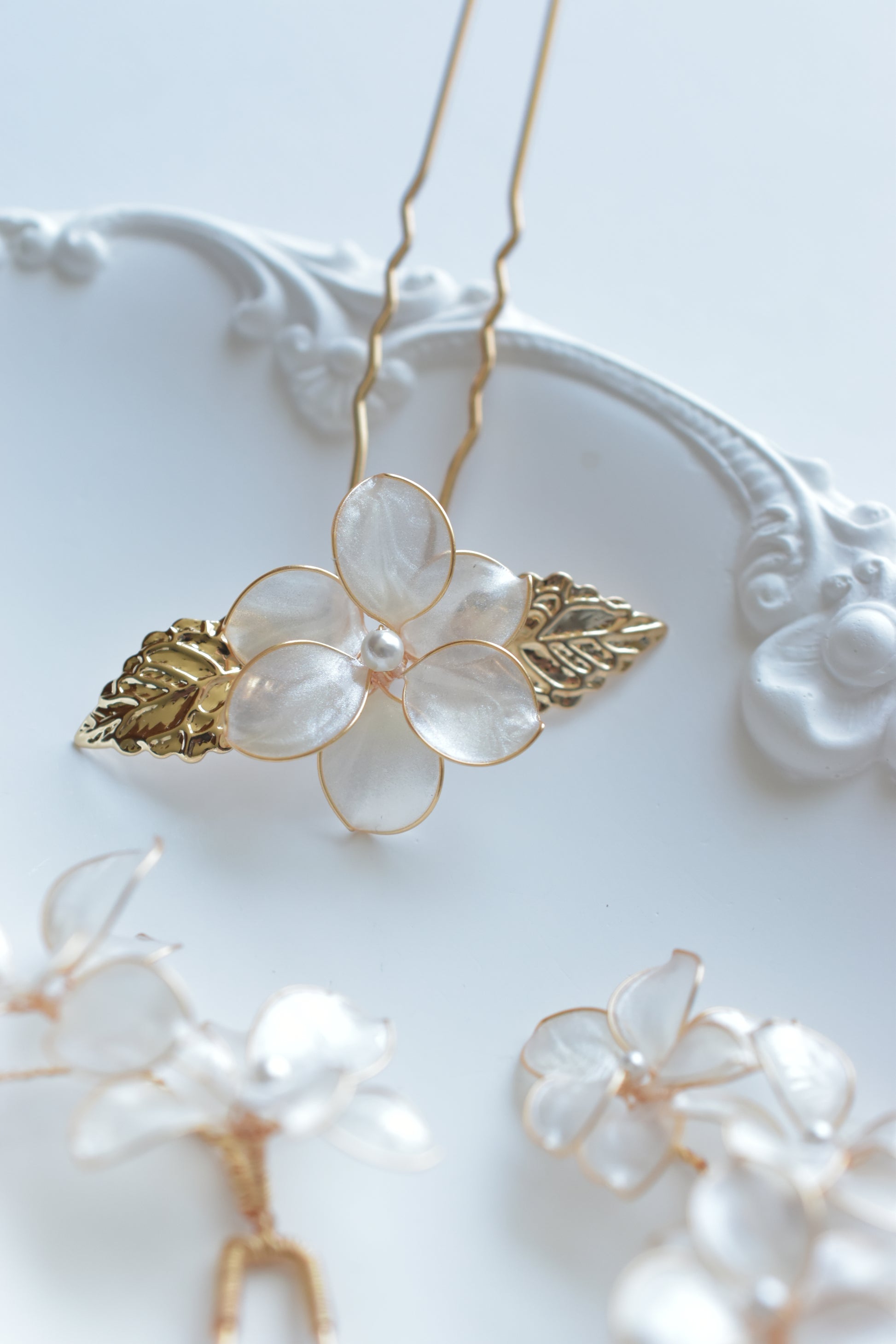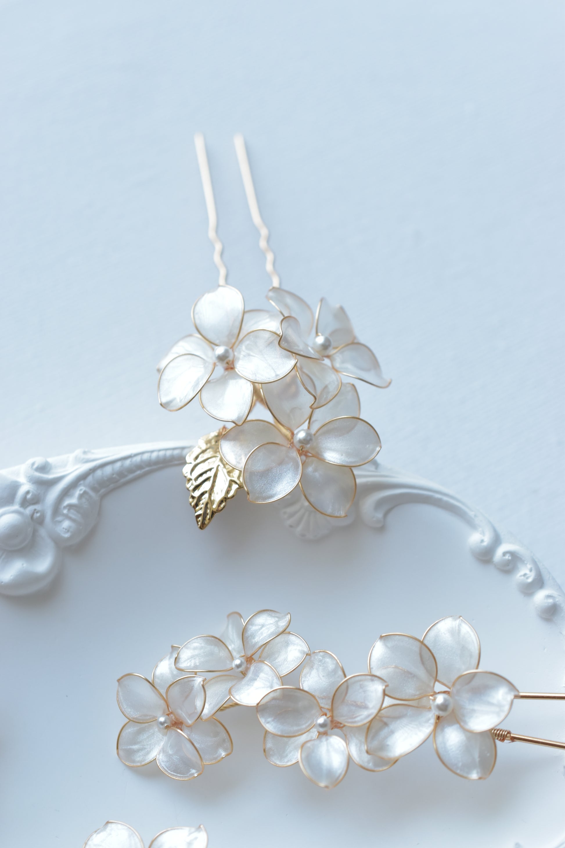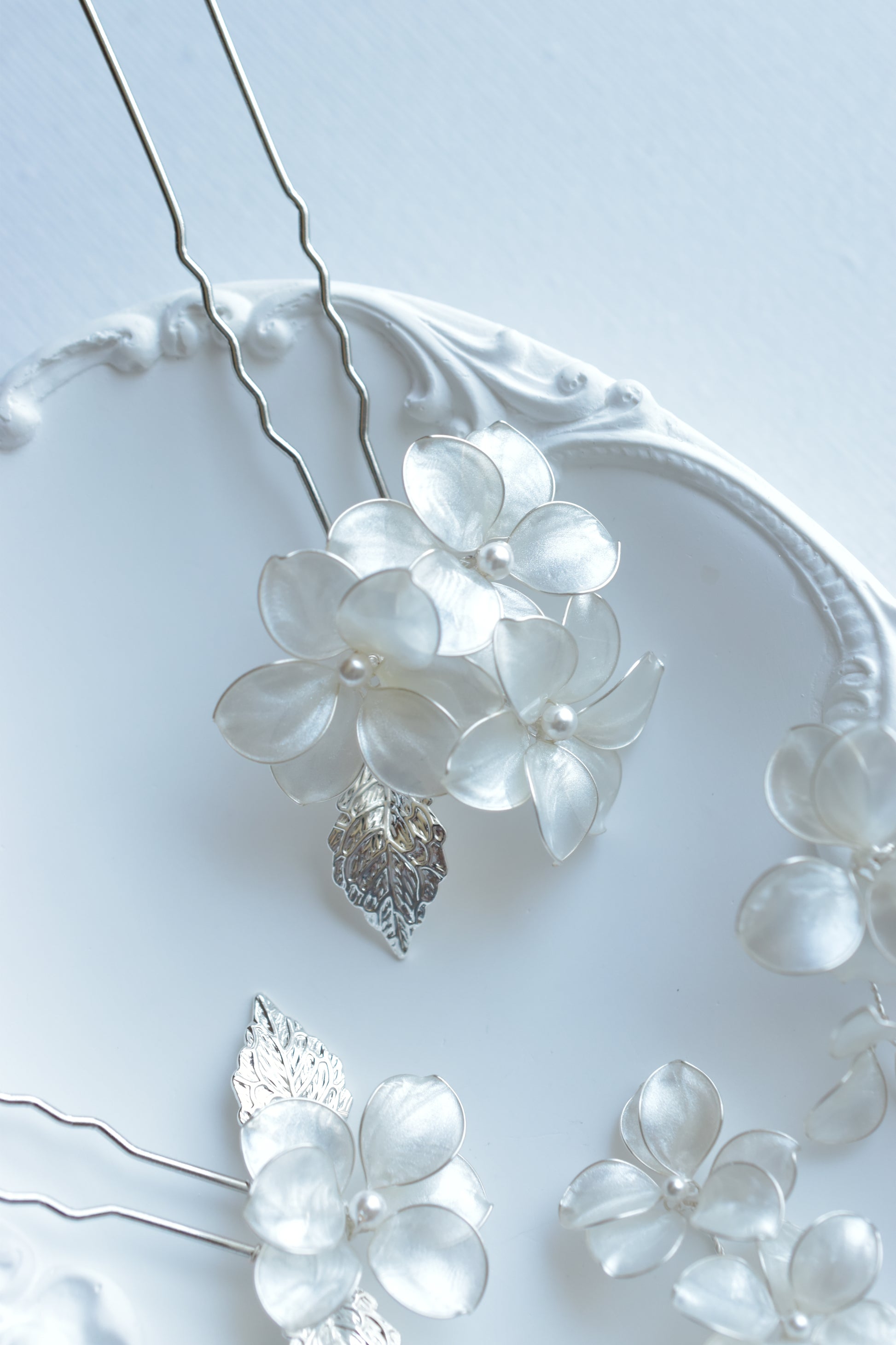 Step into your fairy-tale moment with our enchanting Eleanor hair pins, inspired by the ethereal beauty of Jasmine blossom. Symbolizing the start of a new chapter in your life, this exquisite accessory combines timeless elegance with a lively, cute charm. Delicately adorned with shimmering tiny crystals pearl, it weaves gracefully through your hair, adding a touch of magical splendor to your bridal ensemble. This hair pins captures the essence of romance and joy, making you feel like the princess you’ve always imagined.ble.