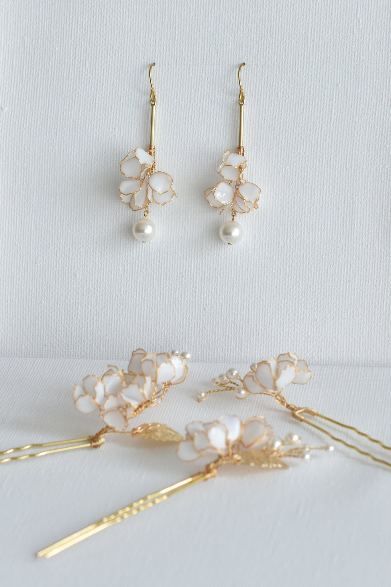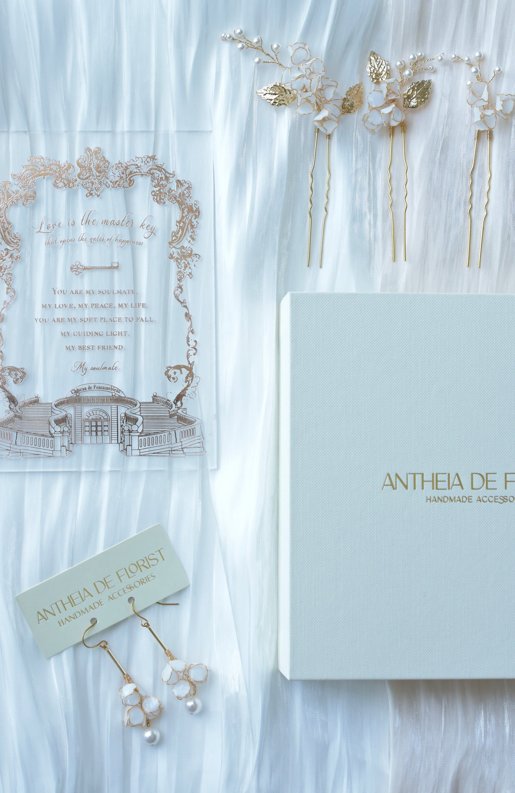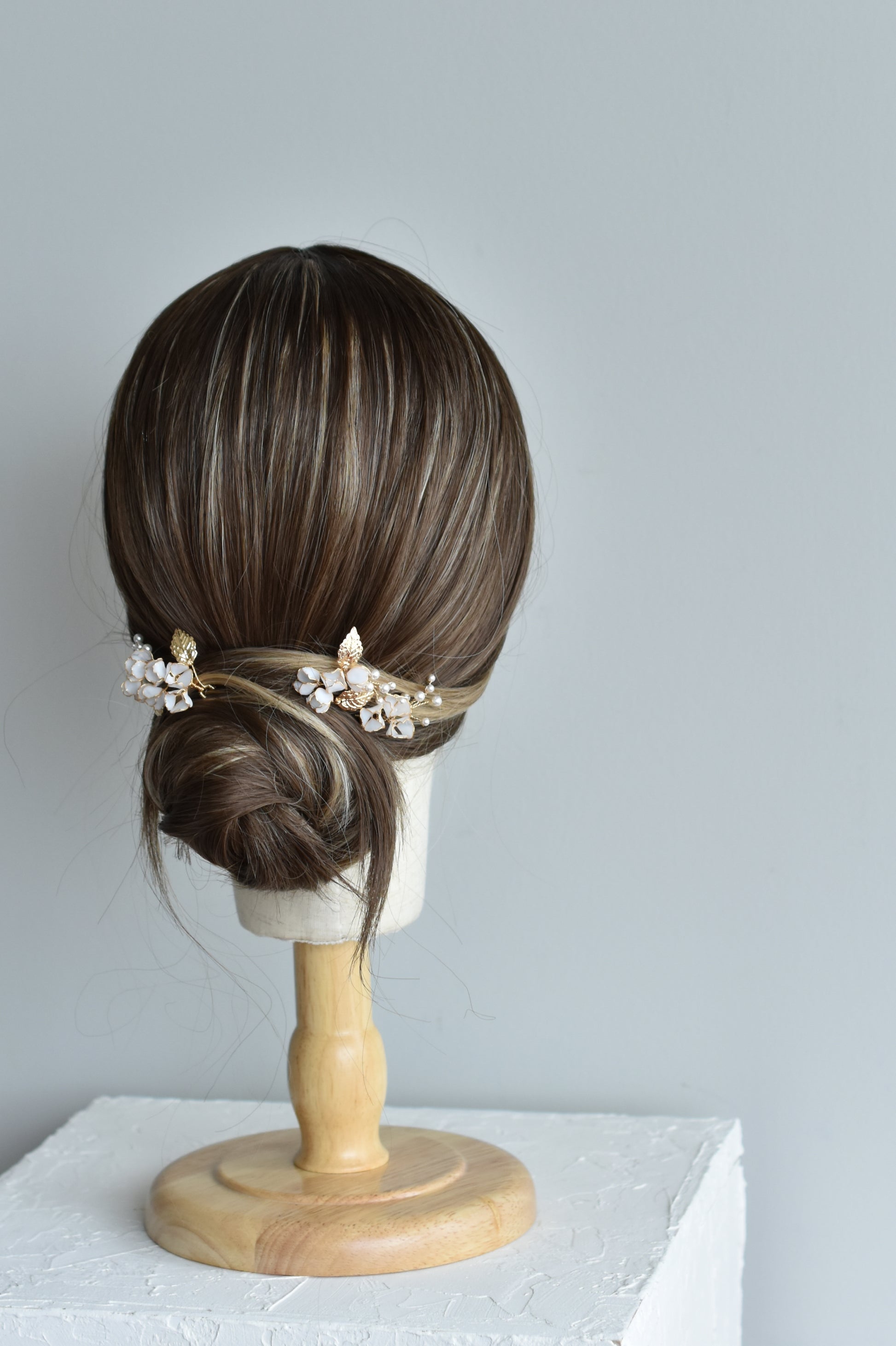 Lilia Hair Pins is the perfect accessory for the bride who wants to channel the natural, feminine allure of the lily. Whether pinned into an elegant updo or cascading down soft, romantic waves, this captivating piece will make you feel like a true vision of loveliness. Embrace the purity and joy that the lily of the valley represents, and let its exquisite elegance elevate your entire bridal ensemble.