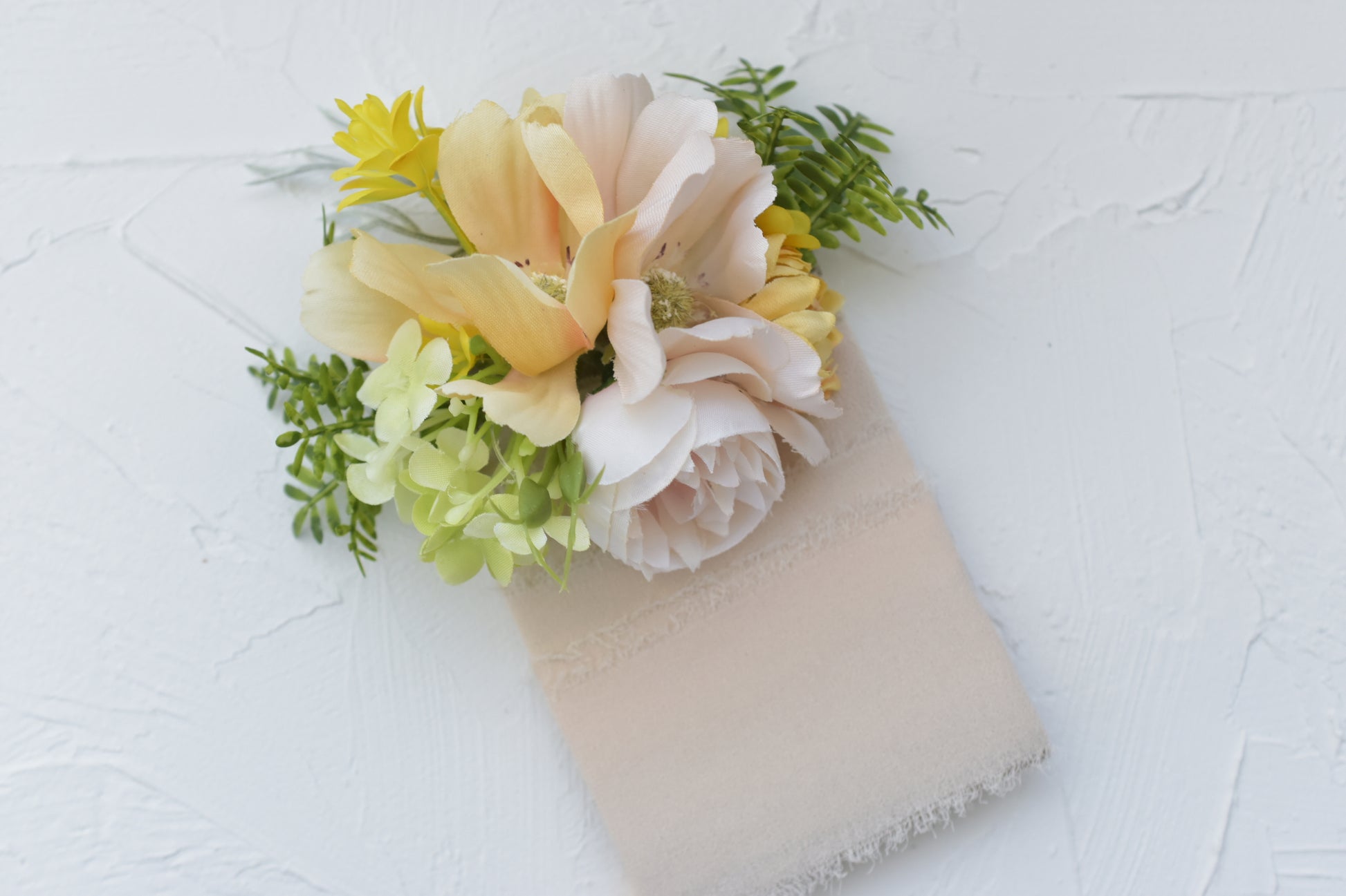 - Pairs perfectly with Champagne or Cream Yellow silk chiffon ribbon.