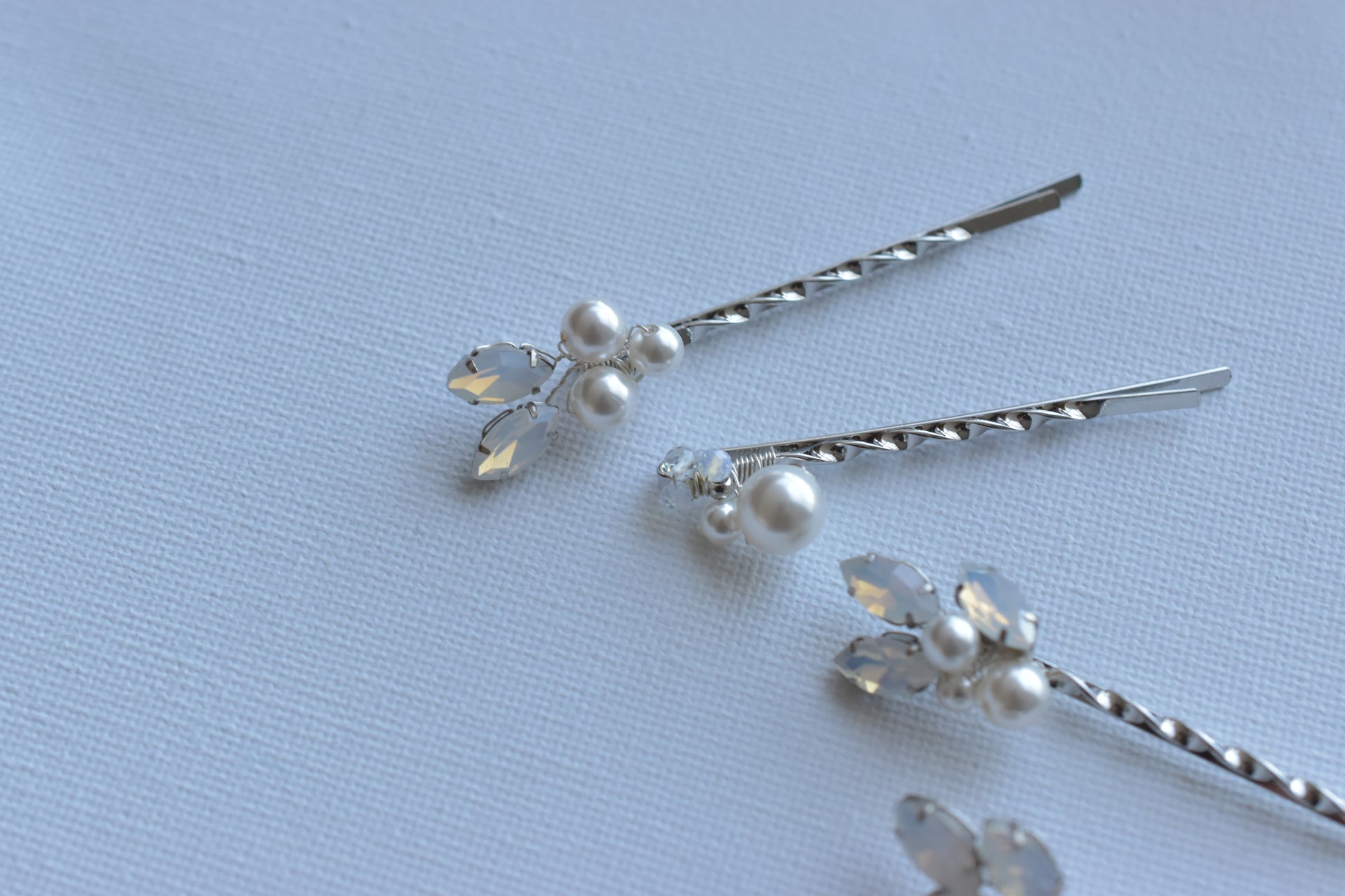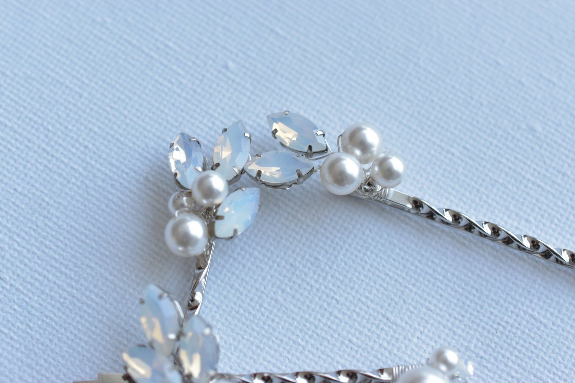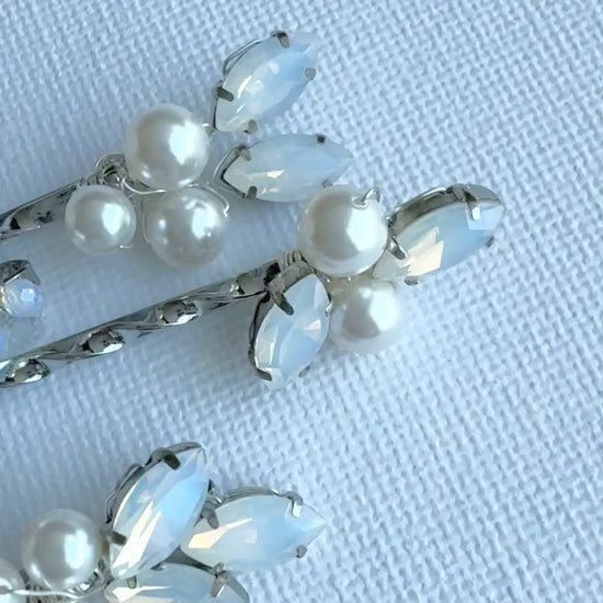Selene combine the soft glow of moonstone crystal with the luminous finish of crystal pearls, creating a look that’s both simple and enchanting. Designed to bring a touch of mystery and understated glamour, each slide catches the light beautifully, adding a gentle, glowing accent to any hairstyle. Perfect for those who love refined beauty with a hint of magic.